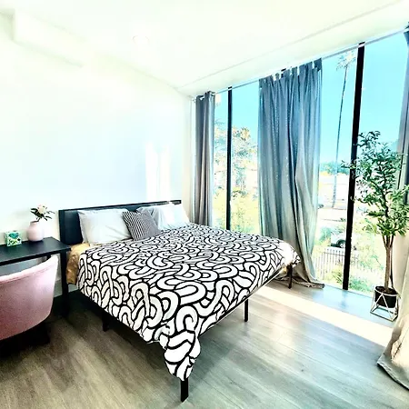Das Apartment LA Modern Street View Glass Window 2BR Los Angeles in Los Angeles liegt 5 km vom Flughafen Hollywood Burbank entfernt. WLAN und ein Privatparkplatz sorgen für den größtmöglichen Komfort der Gäste.